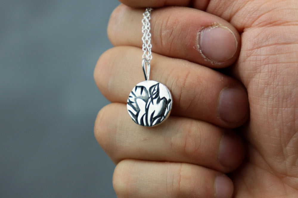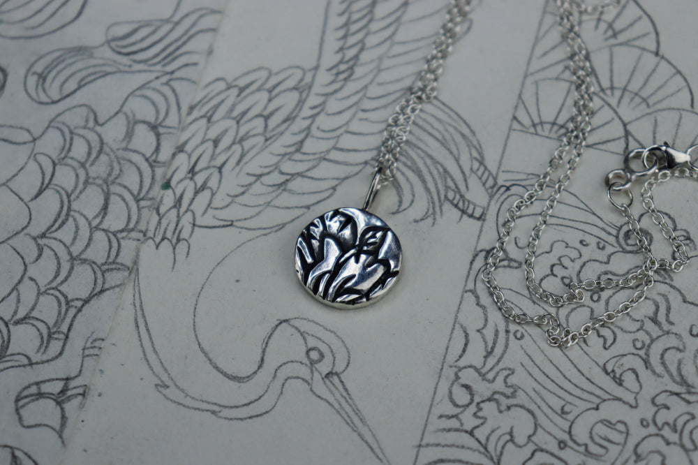Hand sculpted in wax and cast using lost wax method in sterling silver