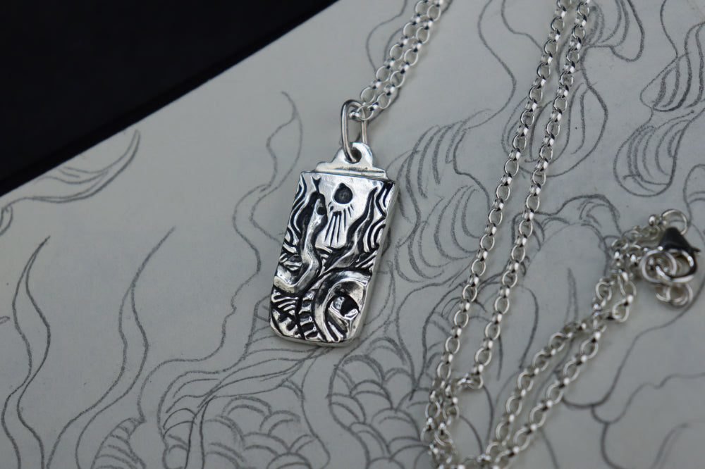 Hand sculpted in wax and cast using lost wax method in sterling silver